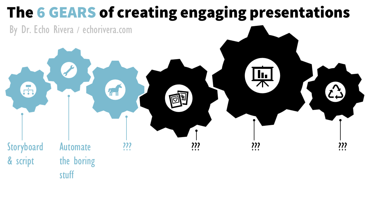 In my program, you’ll learn how to apply an information design framework that lets you quickly whip together engaging, easy-to-follow, visual presentations that will keep your audience engaged enough to actually learn the thing.